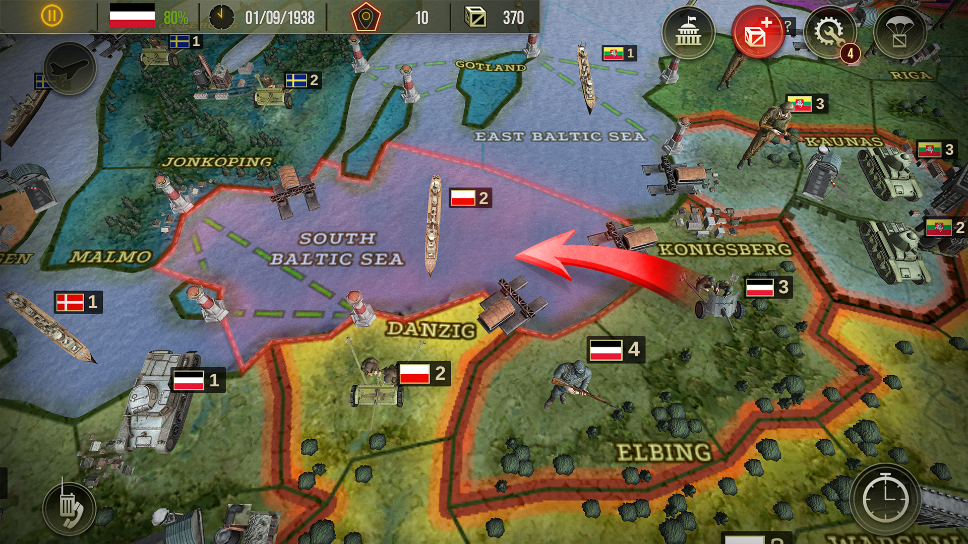 Как полководец, ты будешь управлять пехотой и танками, истребителями и бомбардировщиками, флотом и артиллерией.